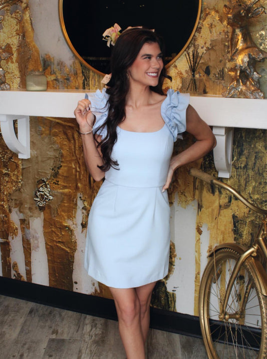 Blue Sleeveless Pleated Mini Dress