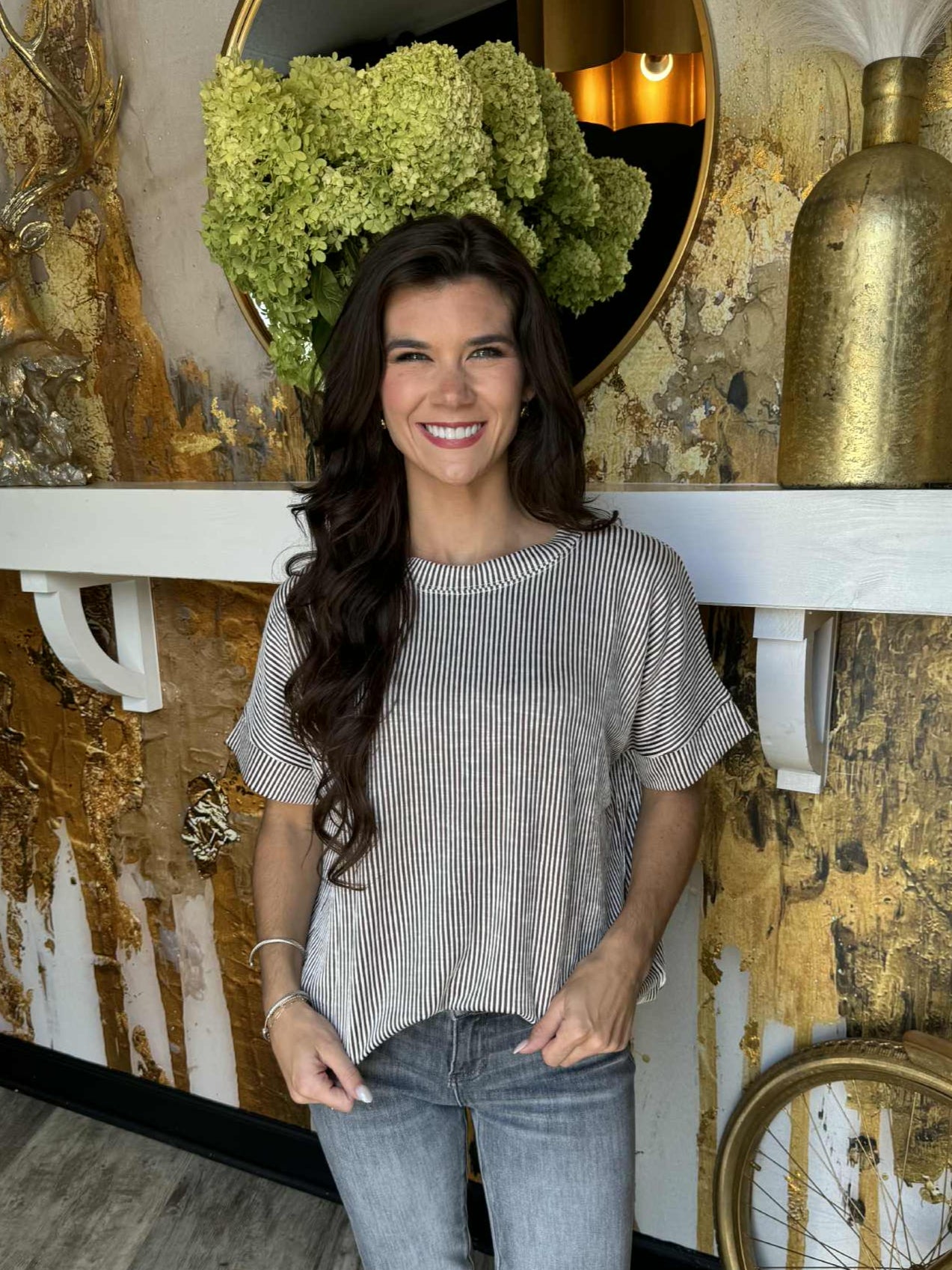 CORDED RIB SHORT SLEEVE TOP TOTAL BODY LENGTH: 24.25", BUST: 47" approx. - MEASURED FROM SMALL * COLOR MAY VARY SLIGHTLY DUE TO MONITOR RESOLUTION