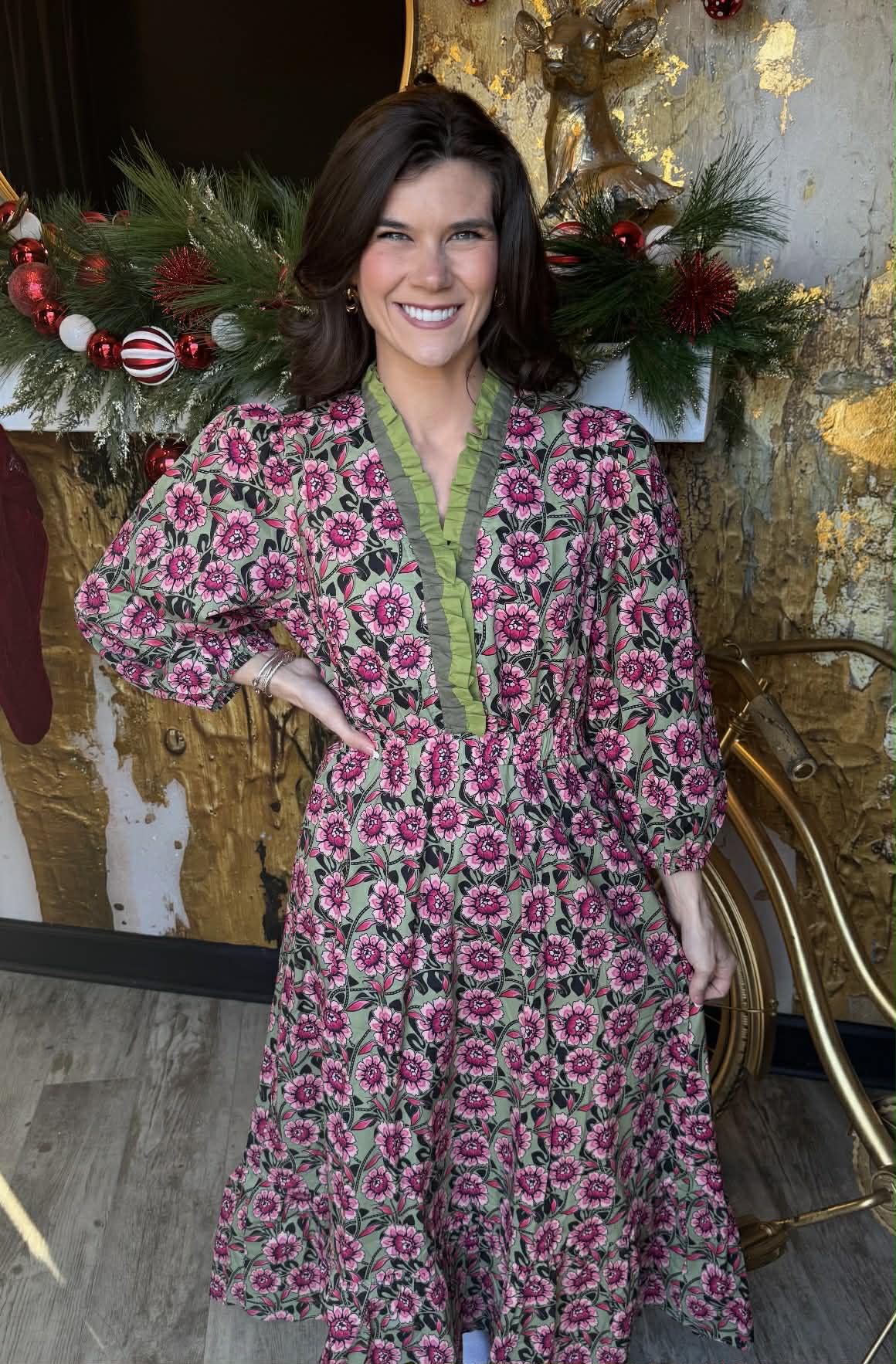 Sage Mix Floral Ruffle Midi Dress
